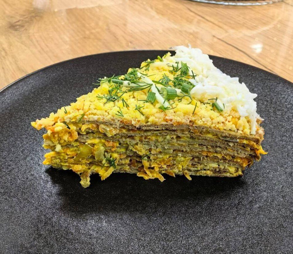 Печень куриная, мука пшеничная, пассированный лук и морковь,яйцо куриное, майонезный соус